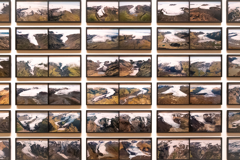 Sadly, though, the glaciers are shrinking. I knew that, but was shocked to see it highlighted in the Olafur Eliasson exhibits at the Tate Modern this weekend. He took aerial shots of a number of Iceland’s glaciers in 1999, and returned this year to repeat those shots – same place, same time, same angle, same distance. And the difference is all too visible.