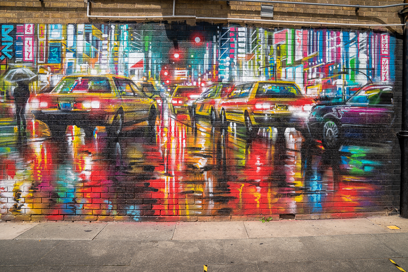 This classic Dan Kitchener mural really grabs the attention of passers by, whether they are popping into the local shops or driving past. I’m a big fan of this British artist, and this of you follow my street art travels and posts will have seen his work popping up from London, Belfast and Hong Kong. And I can assure you he travels and paints more widely than me.