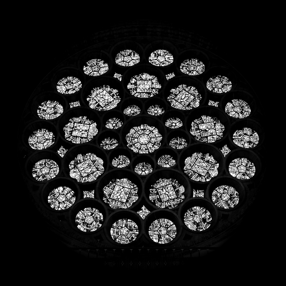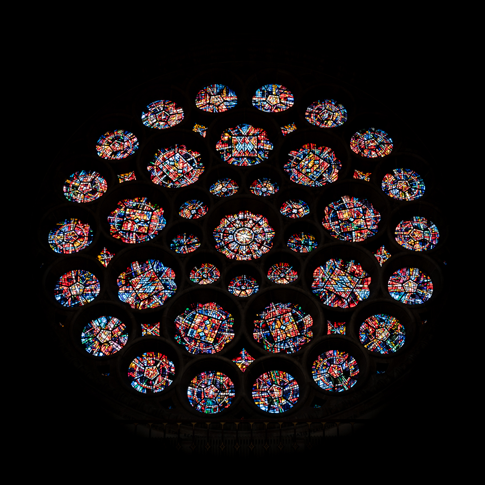 Rose window in St Albans Cathedral, Hertfordshire, June 2020