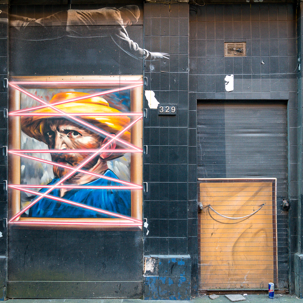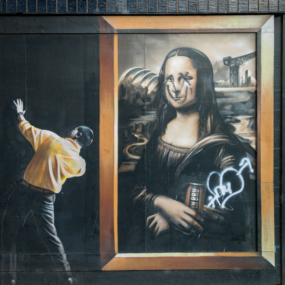 Smug’s versions of classic art on Argyle Street, Glasgow, November 2017
