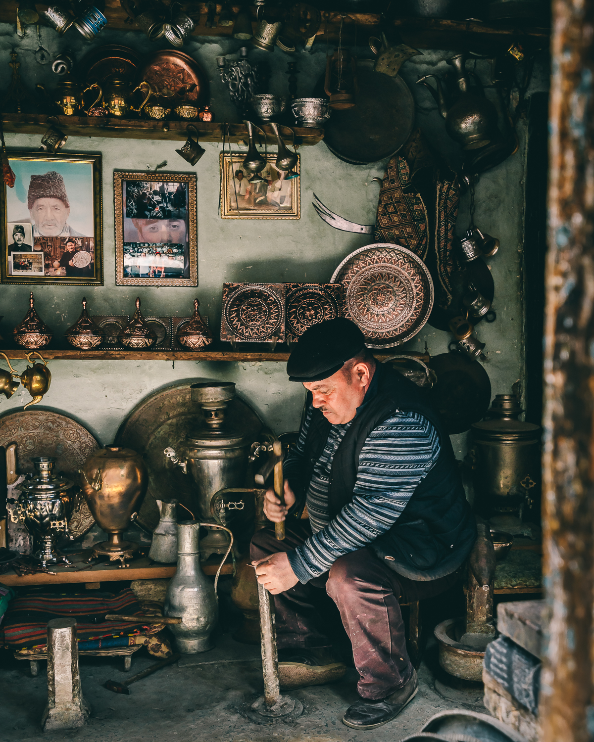 Coppersmith at work in Lahic, Azerbaijan, March 2017