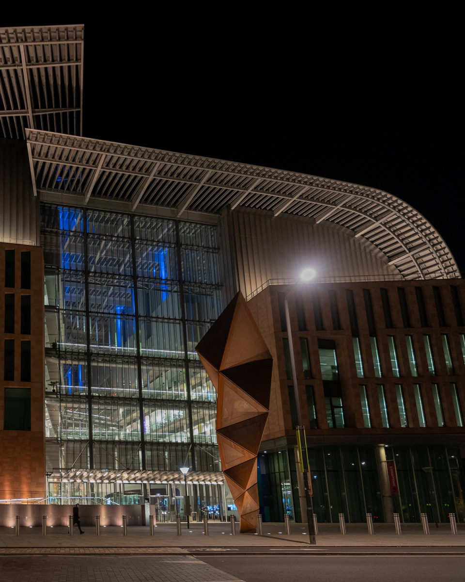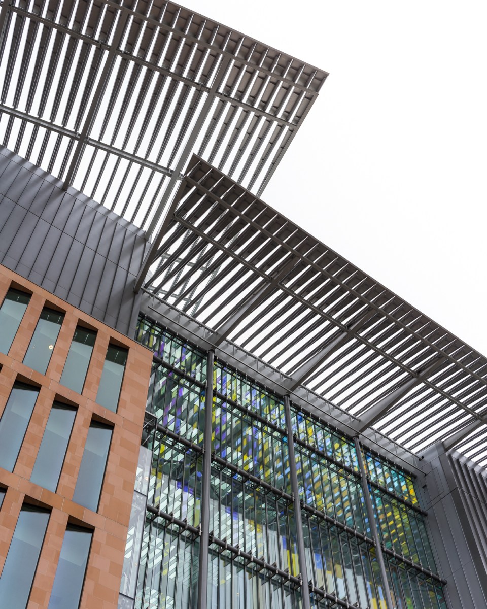 The Striking building over the road from St Pancras International Station, is the Francis Crick Institute. It was designed by architects HOK with PLP Architecture and was inspired in part by the vaulted walls of the station opposite. The curved, interlaced roofs make it recognisable from afar, but they also serve a practical purpose, with heating and cooling units hidden below and solar panels incorporated in the roof.