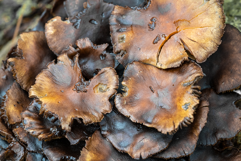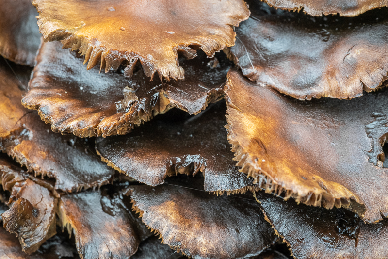 Great textures and colours, and some very tasty (not that I’m going to trust my own ability to select non-poisonous fungi). Looks as though something has had the odd nibble of these though.