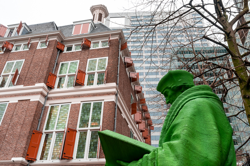 You can find him in the garden of the historic 17th century building, Schielandshuis, right next to Tourist Information.