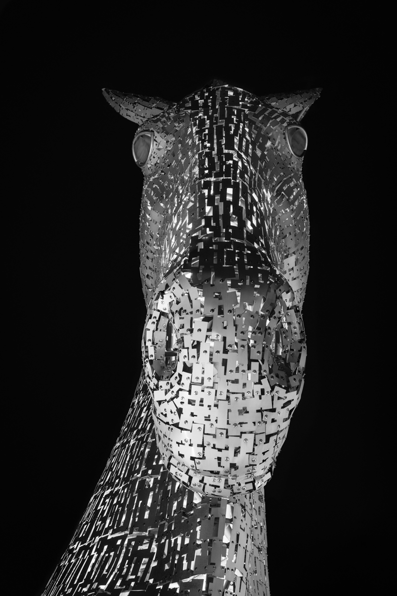 Kelpie sculpture based on Duke the Clydesdale horse, Falkirk, February 2020