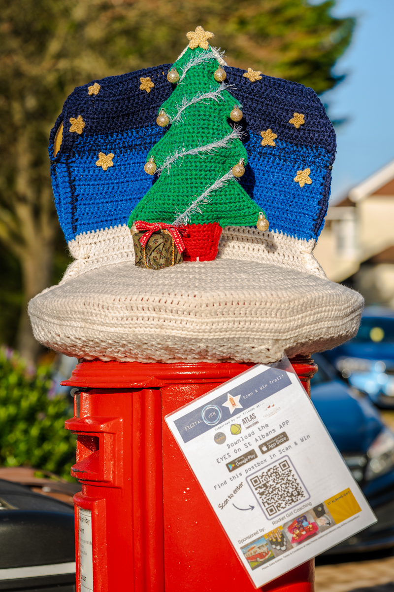 The yarn bomb Christmas trail has returned to St Albans this Christmas. The decorated postboxes are sponsored by local companies, and the yarn bombs are made by talented locals. The public download the app and scan in the QR code of each box they find, which rewards them with an entry into a prize draw.