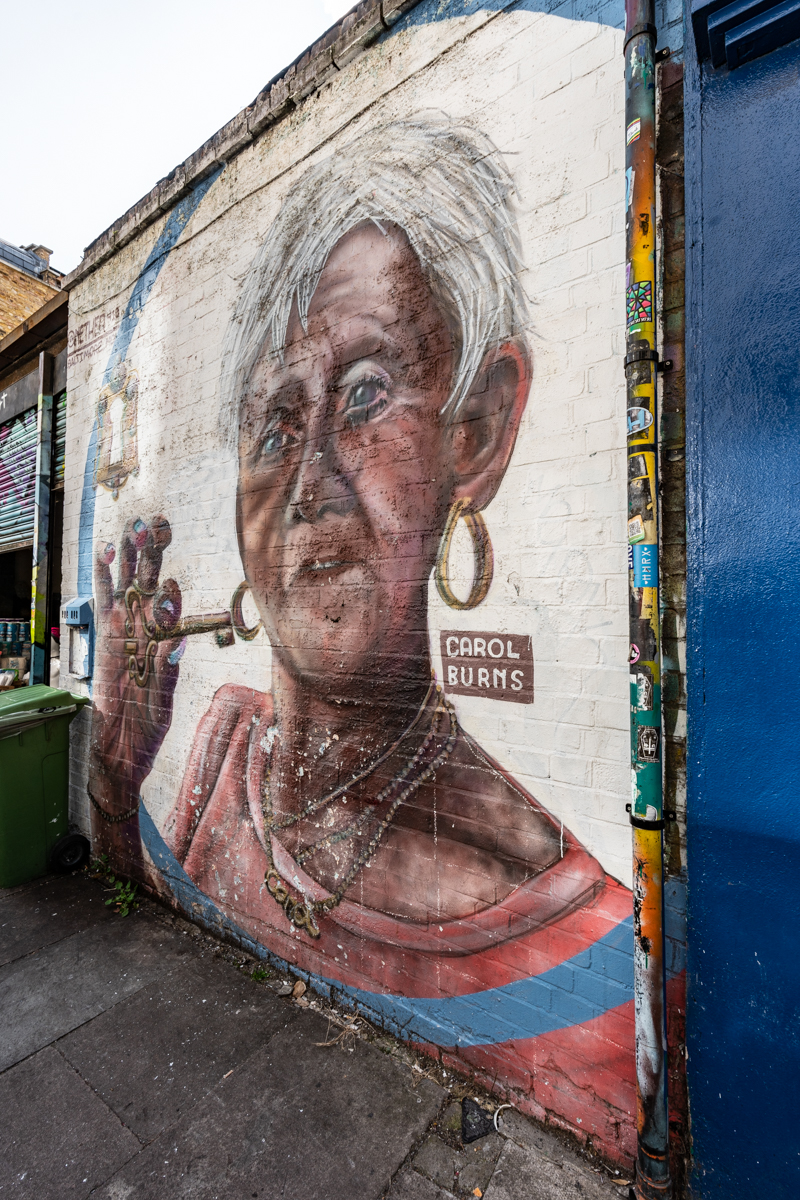 Nether, a street artist from Baltimore, visited London in Spring 2019 and treated us to a variety of his works. He created a new version of the homage to Charlie Burns (which was replaced before I saw it) and a new portrait of Charlie’s daughter.