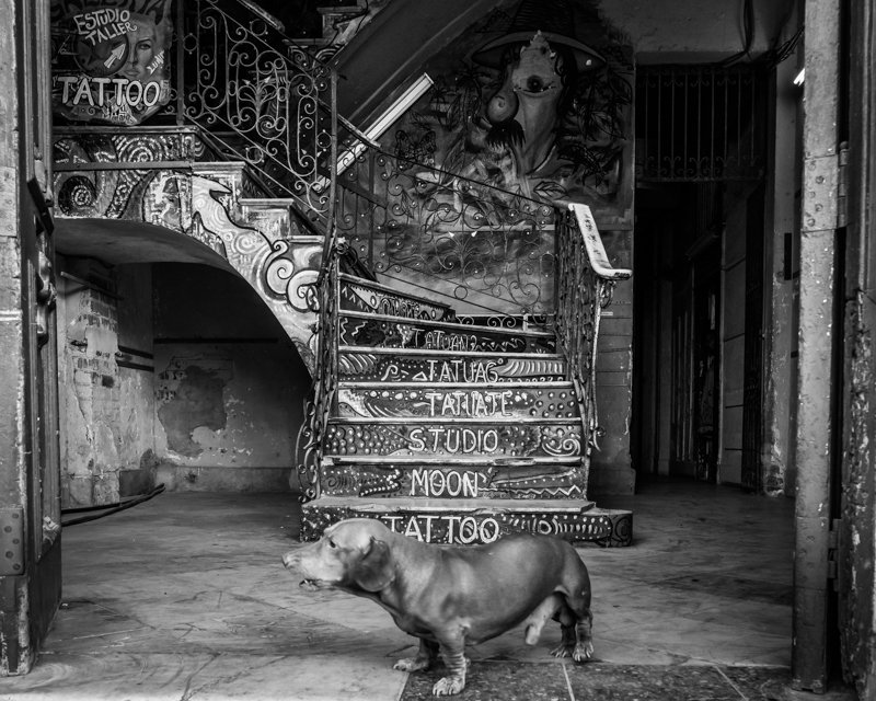 Well, we both saw this in Havana! Instead of a dog, I got a person, 2nd image in this post: https://suejudd.com/2017/04/16/black-white-sunday-steps-and-stairs/