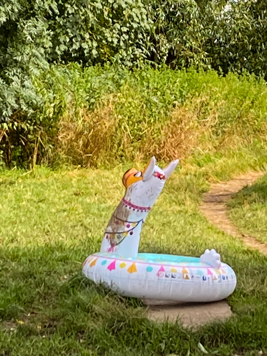 It was good to spot something new. Couldn’t get any closer without wellies as the river had burst its banks yet again. With today’s forecast, the llama will soon be floating away! Happy deer walking 🙂