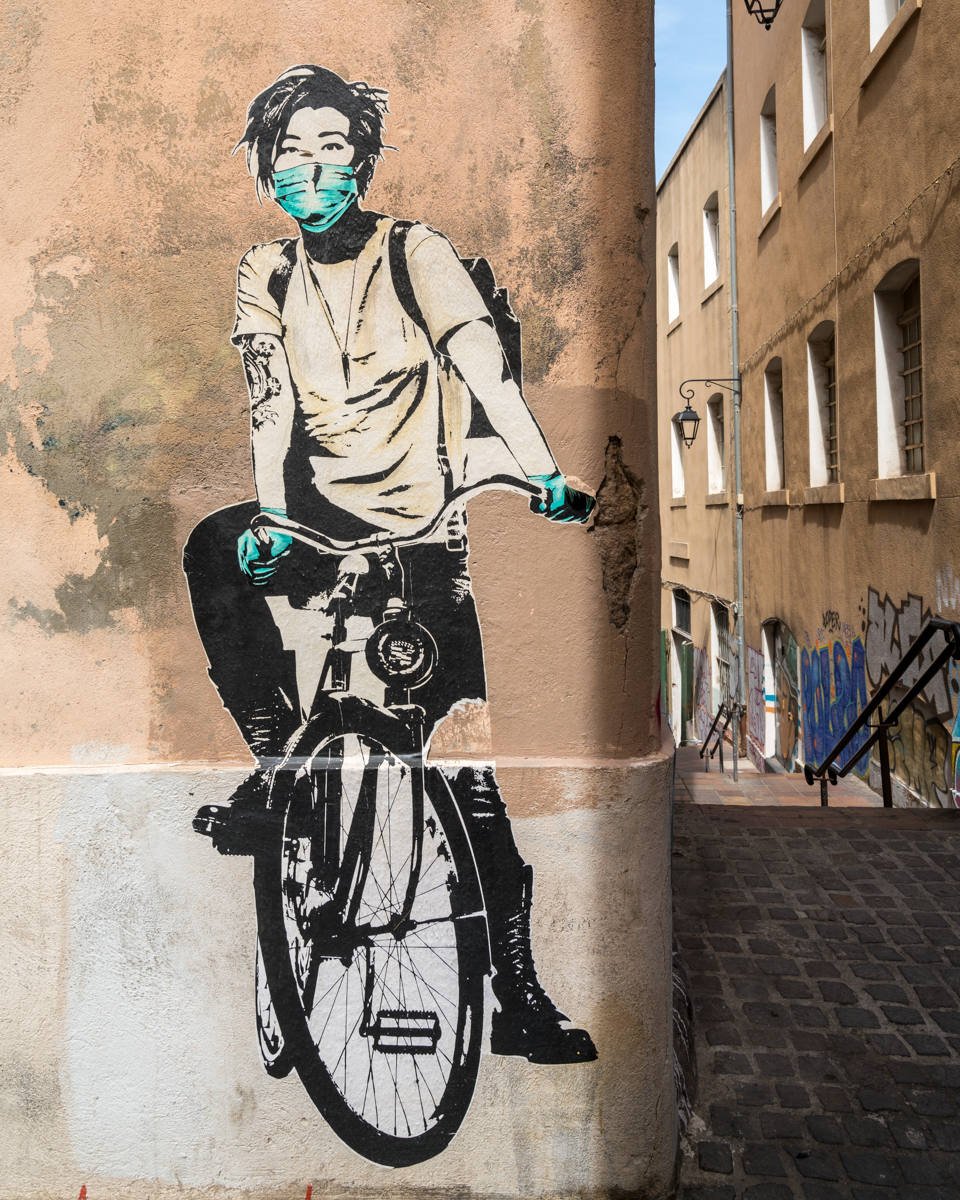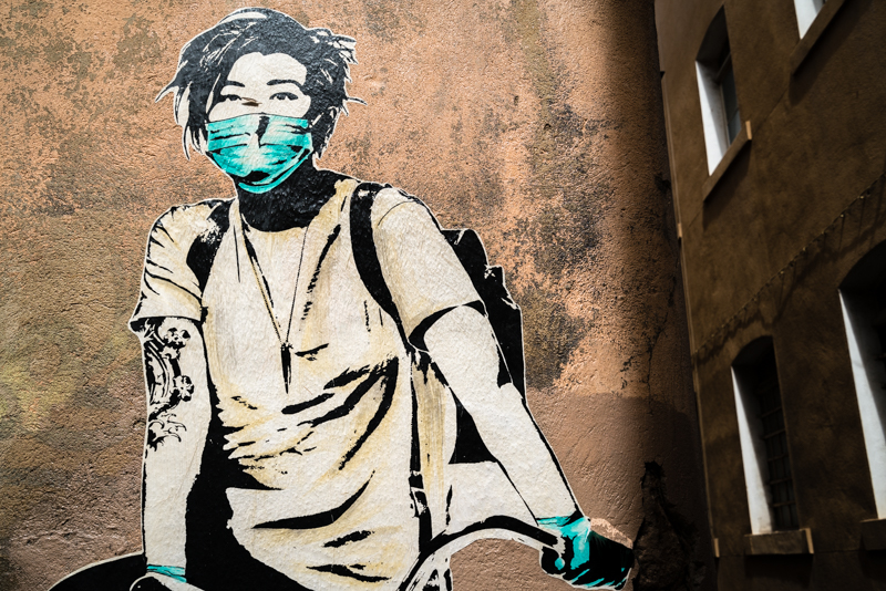 prior to the pandemic i only occasionally saw some folks with them – like while shopping in a store a sales lady had to wear one and then saw a customer once A but never saw street art with masks prior to 2020 – cool image too