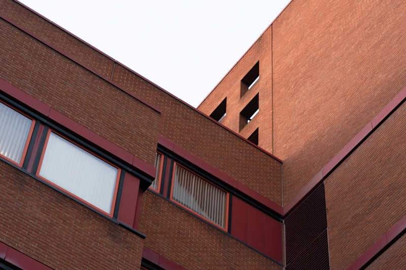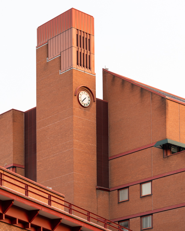 The architect had a lot to do – safe housing of all the books, and readers, and also a striking building that could sit next to the Gilbert Scott hotel next door. Hence the colour and lines