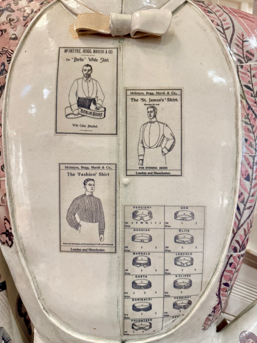 This sculpture was inspired by the St James’s shirt pattern made by McIntyre, Hogg, Marsh & Co, one of Derry’s many shirt manufacturers, in the 1930s.