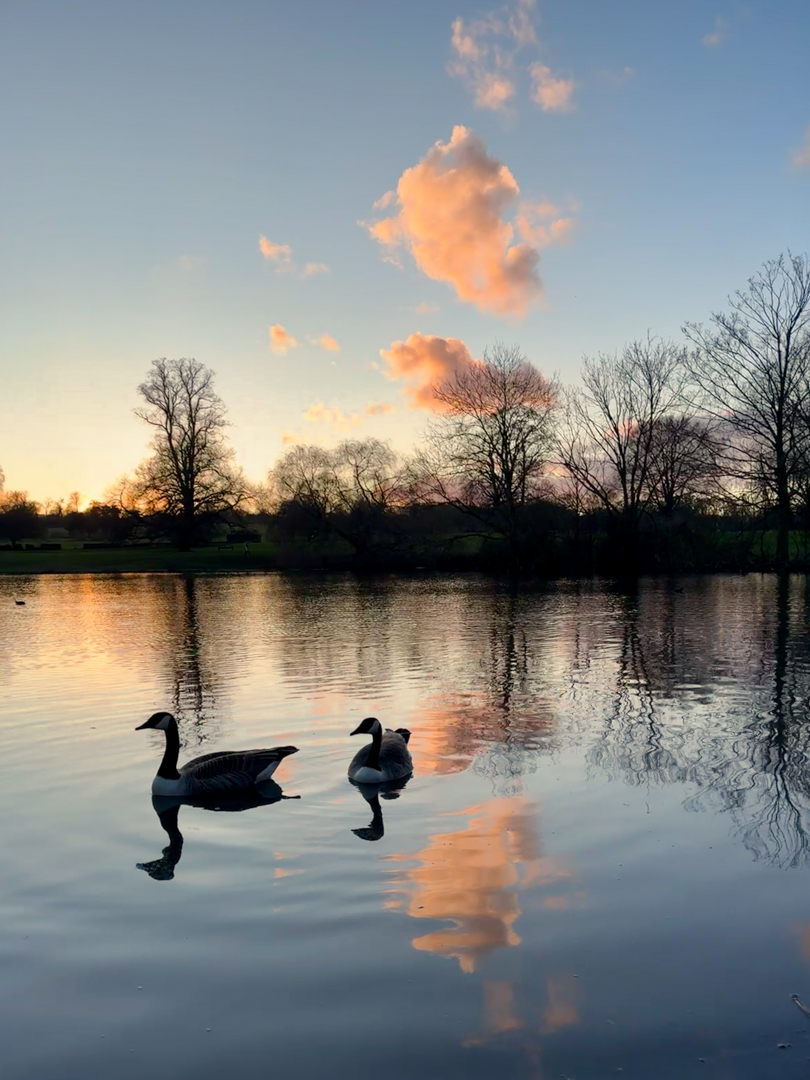 It was a beautiful evening. A nice sunset always give me a colourful walk home across the park and past the lake 🙂