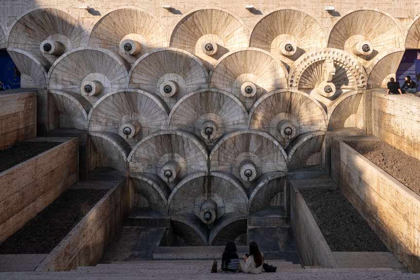 It’s a cascade of Soviet architecture with a definite feel of brutalism. It is built as multiple levels going up a hill. This is effectively a wall that should be a water feature.