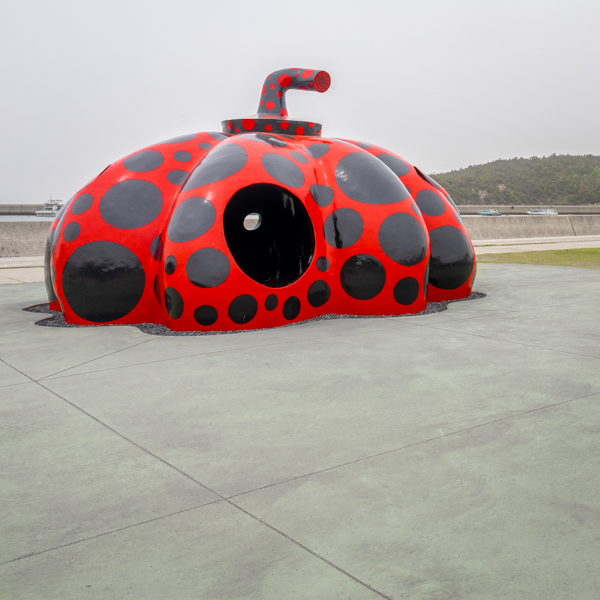 A pumpkin by Yayoi Kusama, at the ferry port on Naoshima, Japan, May 2024