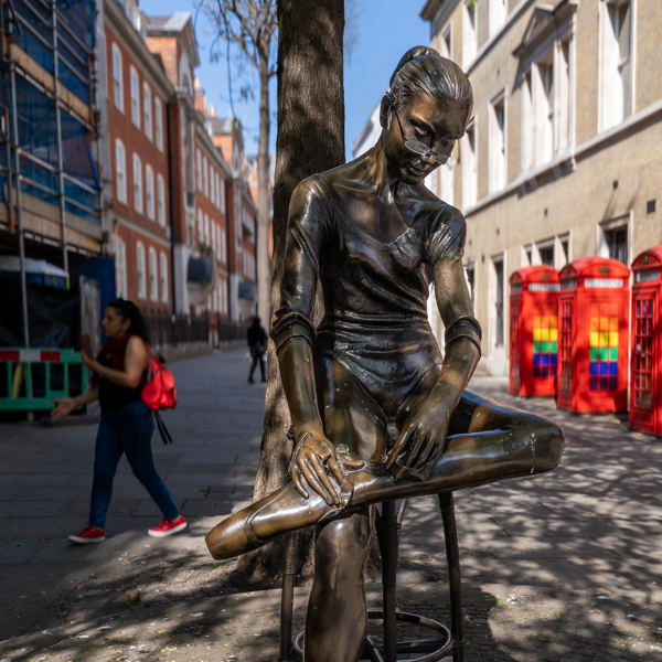 “Young Dancer” by Enzo Plazzotta (1921-1981), Broad Court, London, April 2025