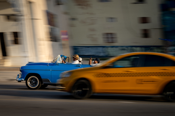 1. So much to like about this photo Debbie, the colour, the movement, the juxtaposition between the seemingly stationary older car and the fast newer car passing by. So much going on as well.
