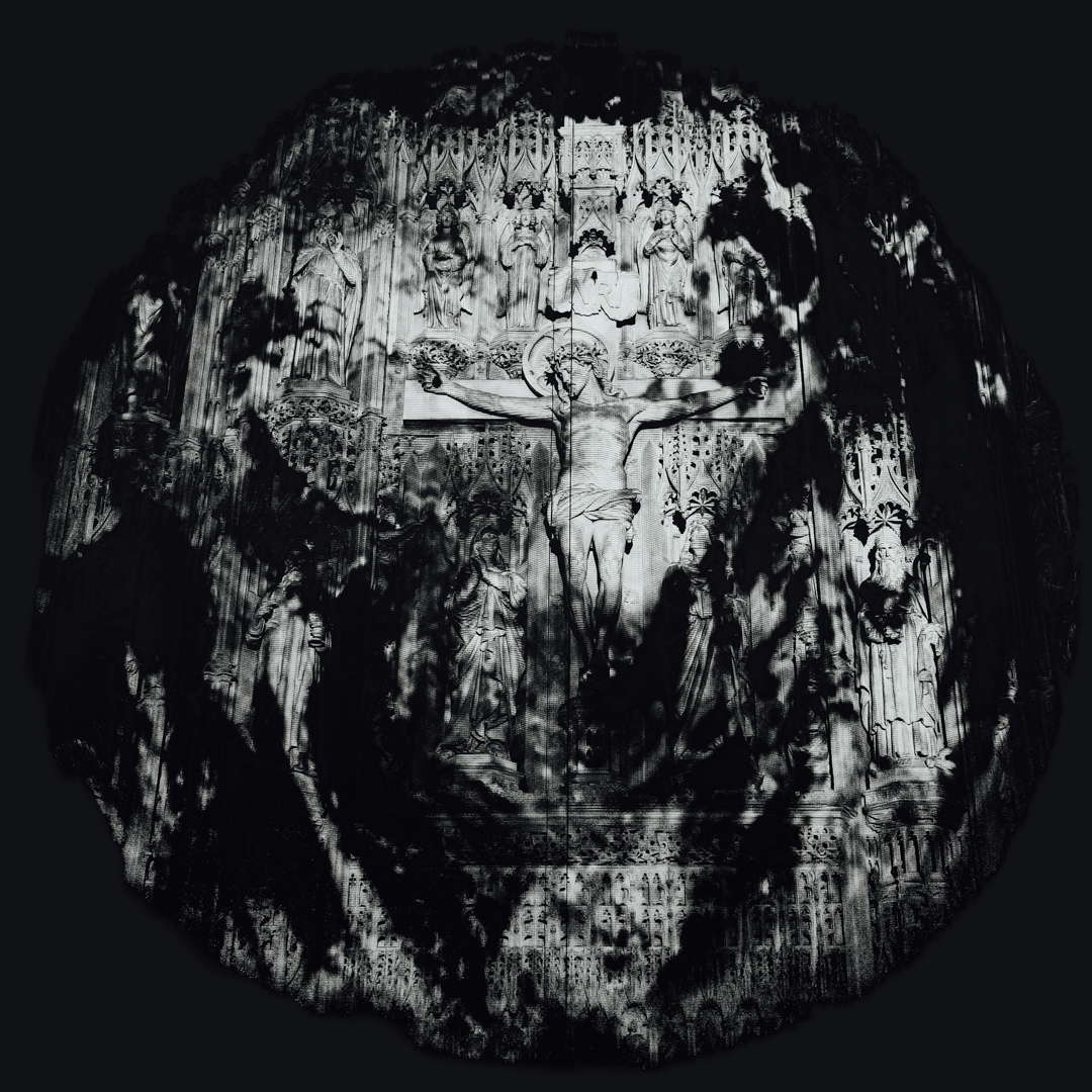 Part of the Space Voyage light show at St Albans Cathedral, Hertfordshire, October 2019
